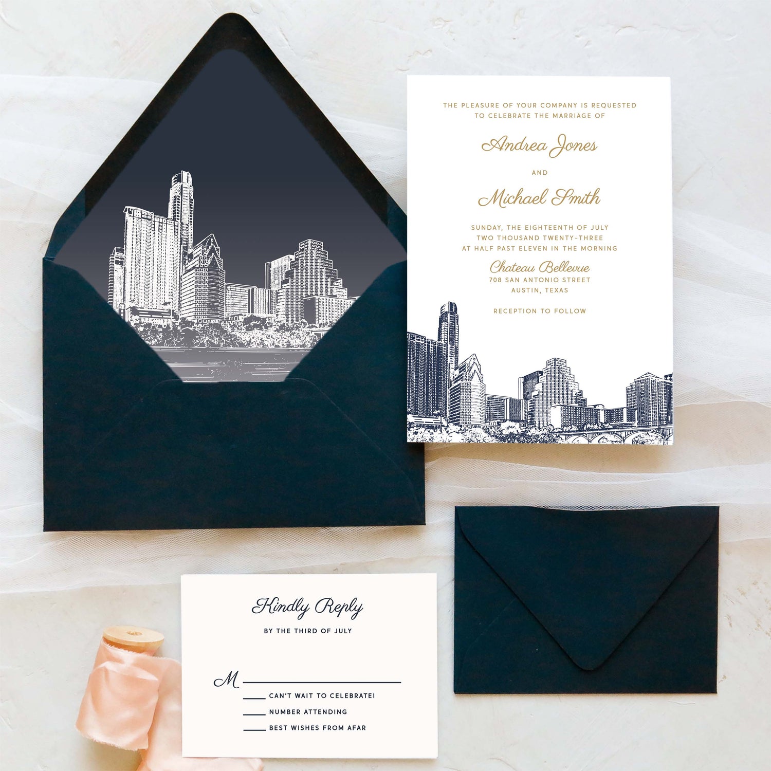 Use the “Build Your Suite” dropdown in the invitation listing to select the items that you want to include in your invitation suite.