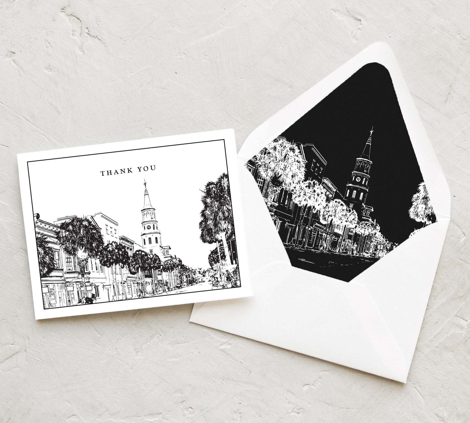 Add a touch of Charleston charm to your thank you notes with these beautiful cards featuring the iconic Rainbow Row. This design captures the colorful historic homes of Rainbow Row, one of Charleston’s most beloved landmarks. Perfect for anyone who loves the city or wants to share its vibrant beauty, these cards are ideal for birthdays, special events, or simply expressing gratitude.