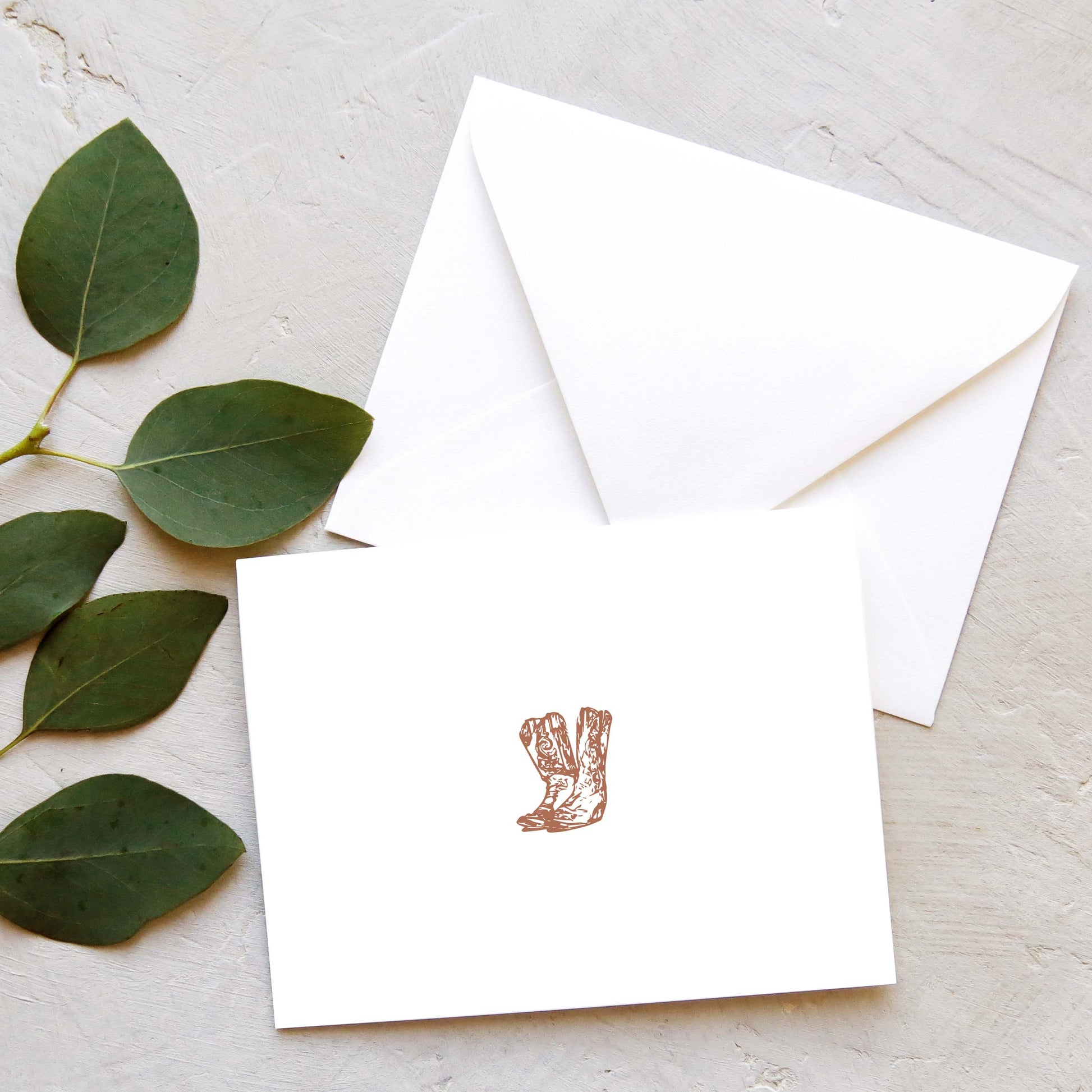 Express your gratitude with a touch of western charm with these stylish, unique cowboy boot notecards.